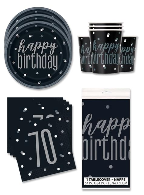 Dekoracje imprezowe na 70. Urodziny na 16 osób - Black & Silver Glitz
