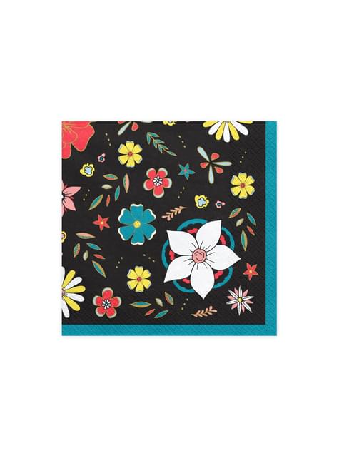 Zestaw 20 czarne papierowe serwetki motyw kwiatowy - Dia de Los Muertos Collection