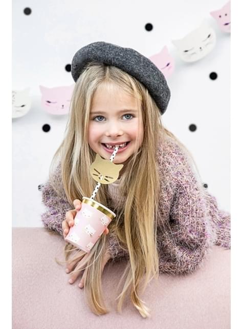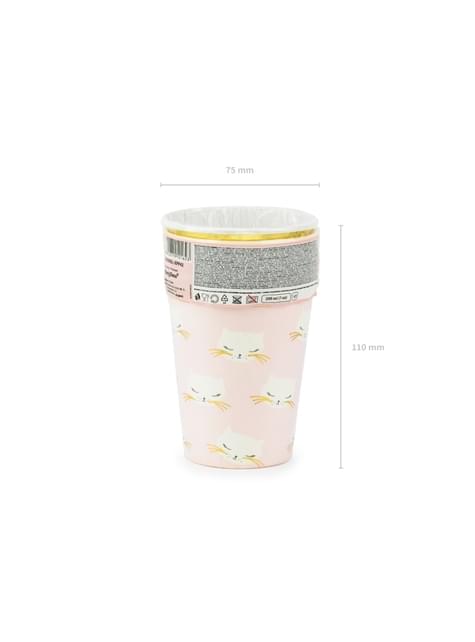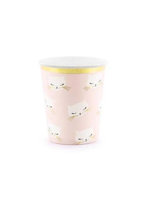 Zestaw 6 pastelowo różowe papierowe kubki - Meow Party