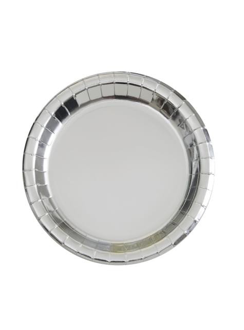 Zestaw 8 okrągłych srebrnych talerzy - Solid Colour Tableware