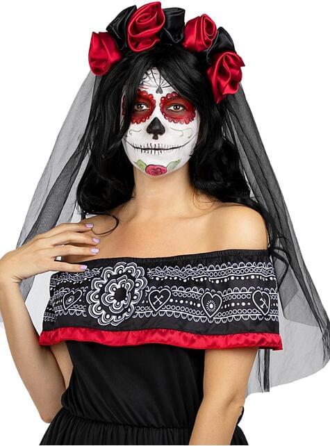 Produkt Made by Funidelia, stworzony w celu zapewnienia wygody, kreatywności i autentyczności. Ten produkt jest zaprojektowany dla tych, którzy poszukują stylu i jakości. Spraw, aby Twoja twarz stała się autentycznym dziełem sztuki i oddaj hołd Catrinie z pełnią blasku meksykańskiej tradycji!