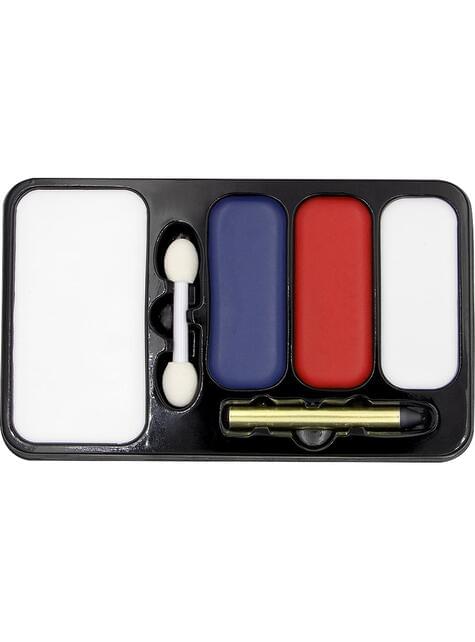 Zestaw zawiera paletę trzech kolorów (biały, niebieski i czerwony), czarny ołówek oraz podwójny aplikator do konturowania lub rozcierania z precyzją. Jego kremowa tekstura ułatwia aplikację i mieszanie odcieni, zapewniając równomierne i trwałe wykończenie. Ten makijaż oferuje wszechstronność, której potrzebujesz zarówno do zabawnego wyglądu, jak i do mroczniejszego, ponurego stylu.