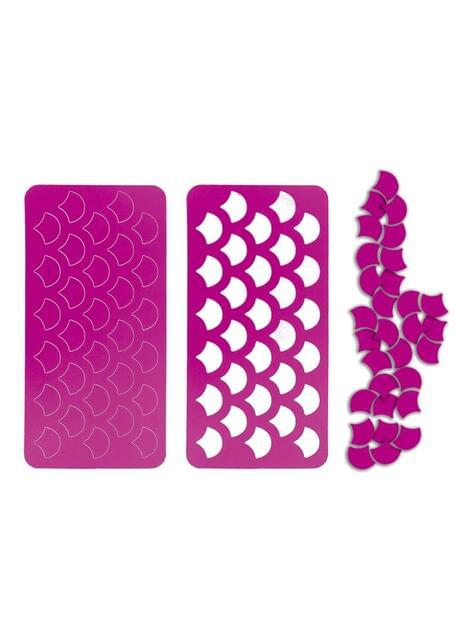 W zestawie znajduje się paleta czterech kolorów (niebieski, zielony, fioletowy i różowy), podwójny aplikator, osiem samoprzylepnych kamieni i trzy szablony w kształcie łusek, aby stworzyć niesamowite efekty morskie. Odcienie łatwo się mieszają, pozwalając na zabawę z tonami w celu uzyskania efektu godnego syreny z bajki. Dodatkowo, jego prezentacja w ozdobnym blistrze czyni go nieodpartym prezentem dla miłośników podwodnego świata.