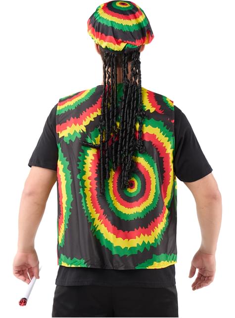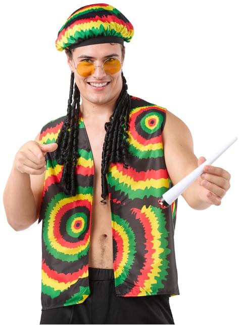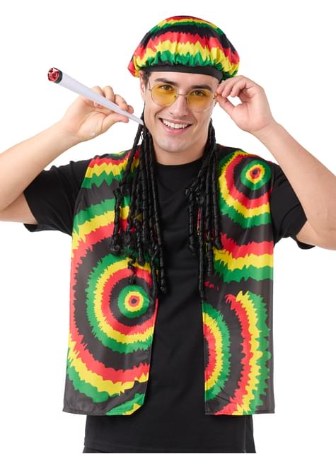 Dzięki temu zestawowi rastafari dodasz swojemu wyglądowi na imprezę lub karnawał relaksujący i zabawny akcent. Zainspirowany najbardziej autentycznym jamaikańskim stylem, ten zestaw uchwyci całą esencję ruchu rasta i jego wolnego, beztroskiego ducha. Idealny dla tych, którzy szukają łatwego, oryginalnego przebrana, pełnego klimatu.